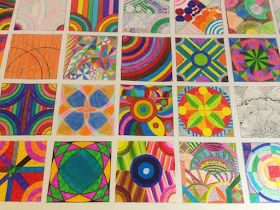 Más grande que el mural de triángulos, se ve que los rezagados se van animando a entregar sus trabajos y el resultado es un verdadero catálogo de creatividad e imaginación...¡ y color !